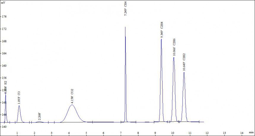 7、一次進(jìn)樣,七組份峰出在同一張譜圖上,操作簡便。